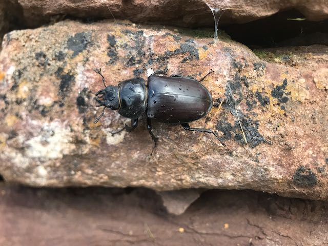 Weibliche Hirschkäfer sind bei uns keine Seltenheit. Die männlichen Käfer fliegen oft auf Augenhöhe vorbei