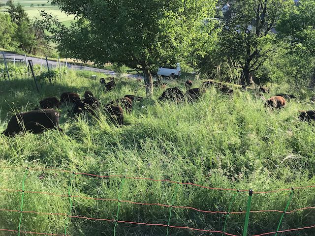 Wo es möglich ist, hilft uns eine befreundete Schäferin beim 'mähen' der Wiesen